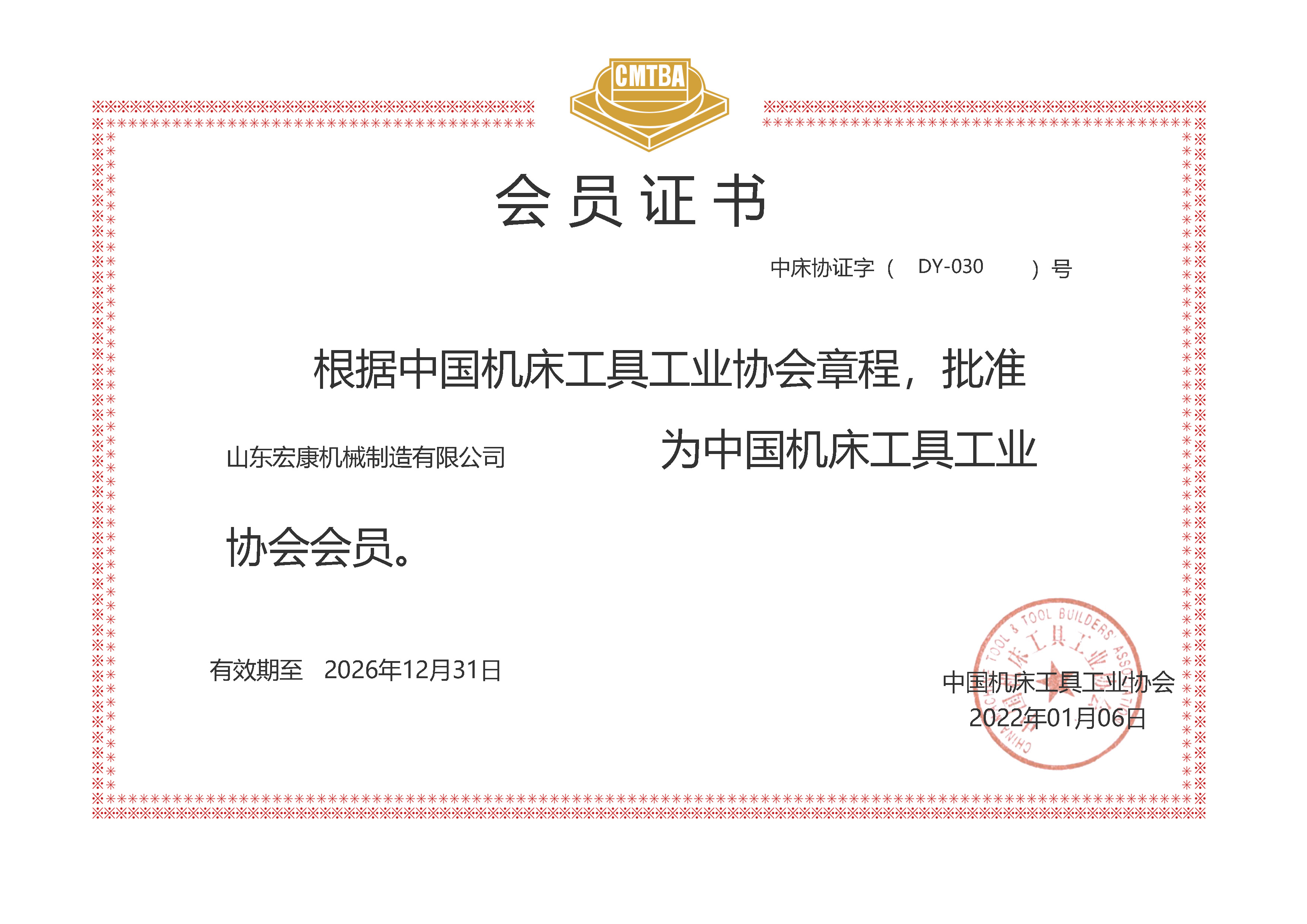 中國機(jī)床工具工業(yè)協會鍛(duàn)壓機(jī)械分會會員證書